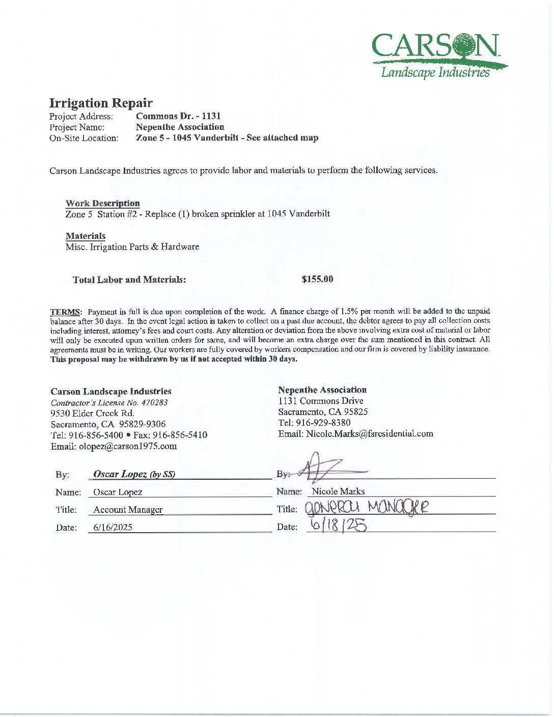 Carson Landscape – Irrigation Repairs – Zone 5, Station 2 by Nicole Marks | Jul 8, 2025 Download Filename: 18-1.pdf File Type: pdf Categories: 2025 Approved Contracts/Proposals, Carson Landscape