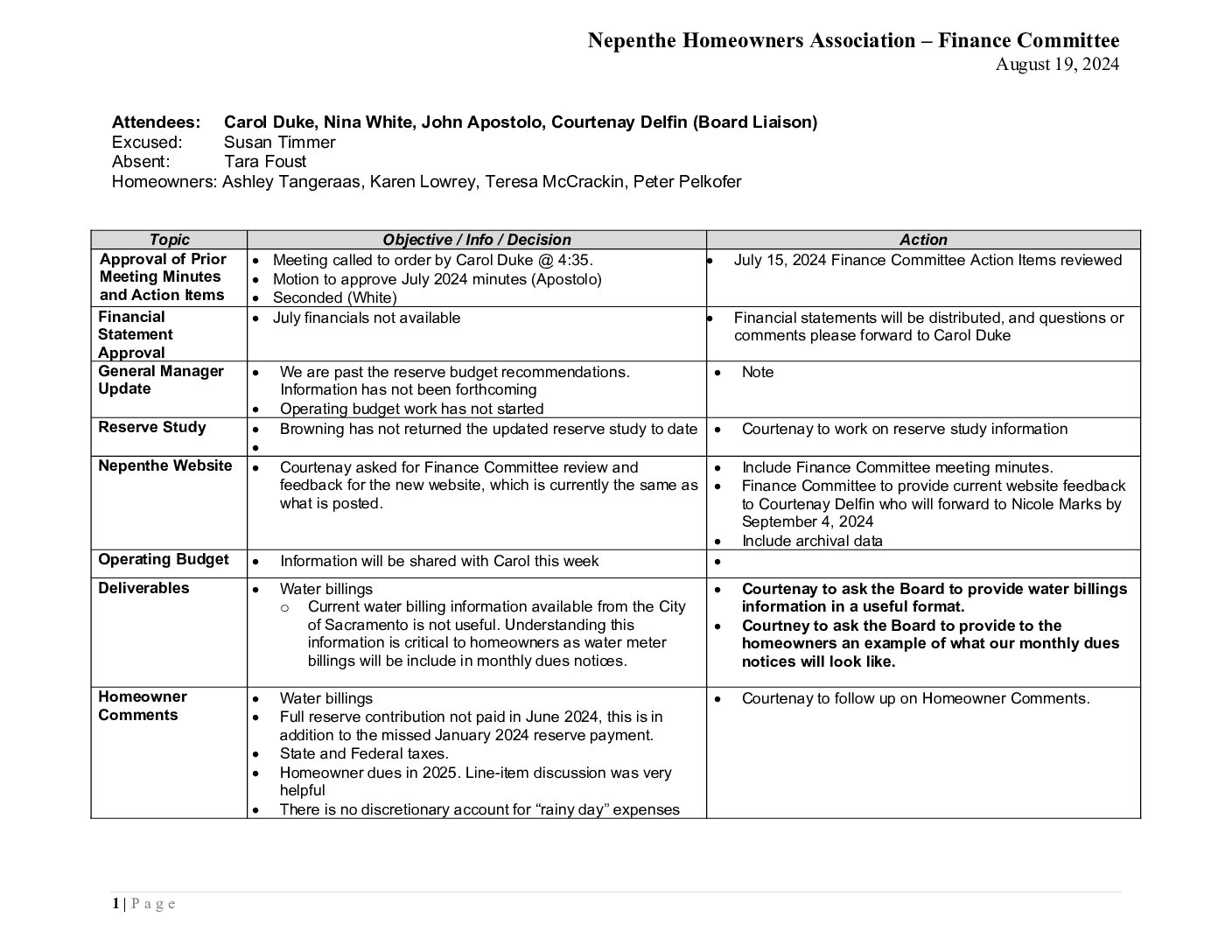 Finance Committee Minutes – August 2024 by Nicole Marks | Jan 30, 2025 Download Filename: Minutes-Aug-2024-1.pdf File Type: pdf Categories: Finance Committee Minutes