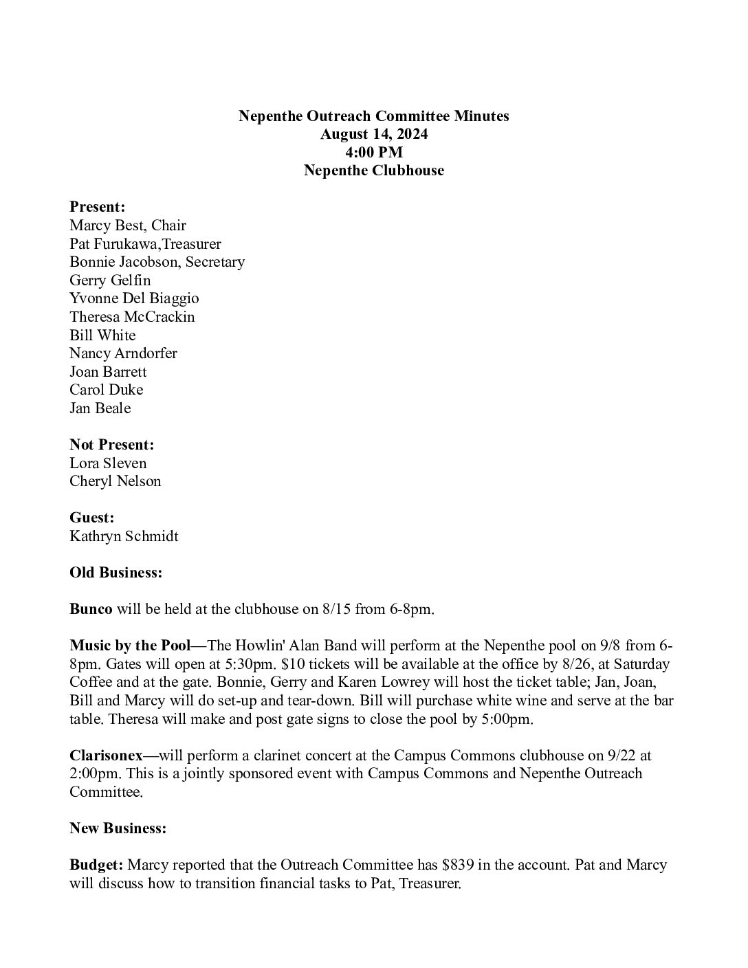Outreach Committee Minutes – August 2024 by Nicole Marks | Jan 30, 2025 Download Filename: Minutes-Aug-2024-3.pdf File Type: pdf Categories: Outreach Committee Minutes