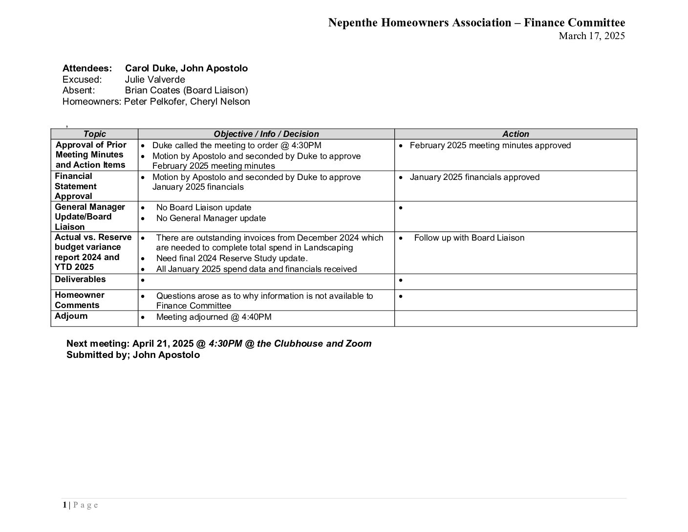 Finance Committee Minutes – March 2025 by Nicole Marks | Mar 19, 2025 Download Filename: Nepenthe-Finance-Committee-March-2025-FINAL.pdf File Type: pdf Categories: Finance Committee Minutes
